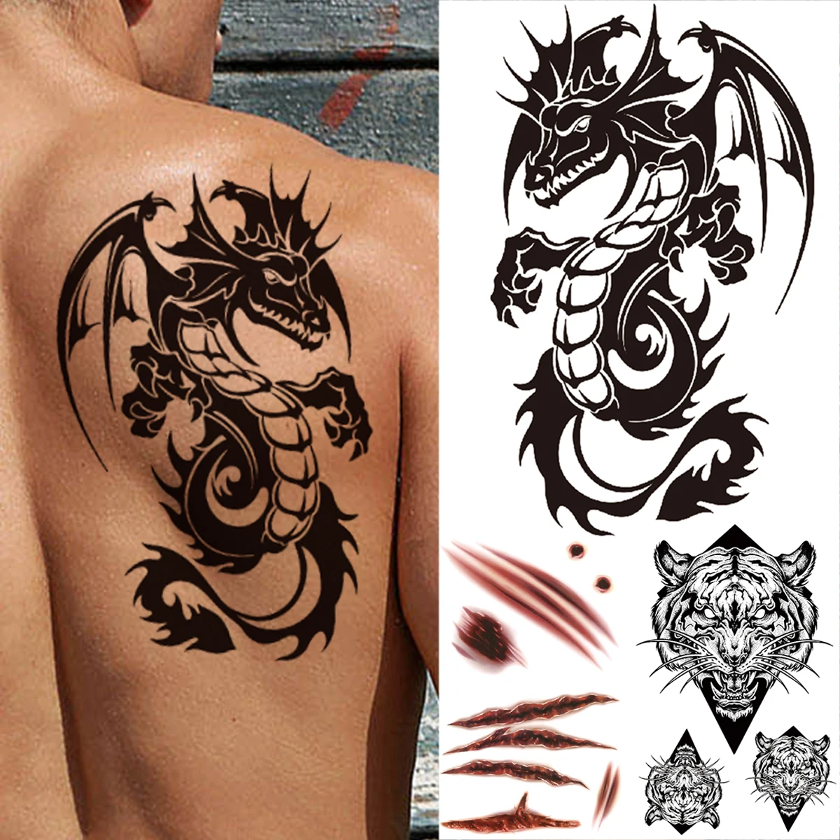 Black Flying Dragon Temporary Tattoos For Men Women Kids Halloween Tiger Fake Tatoo Sticker Diy Party Waterproof Tattoo Stickers Aliexpress Mobile